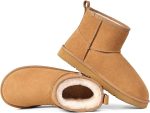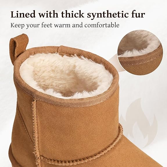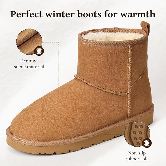 Womens Genuine Suede Boots Brown Anti-slip Warm Comfort Ankle Fuzzy Winter Short Boots for Outdoor Indoor
